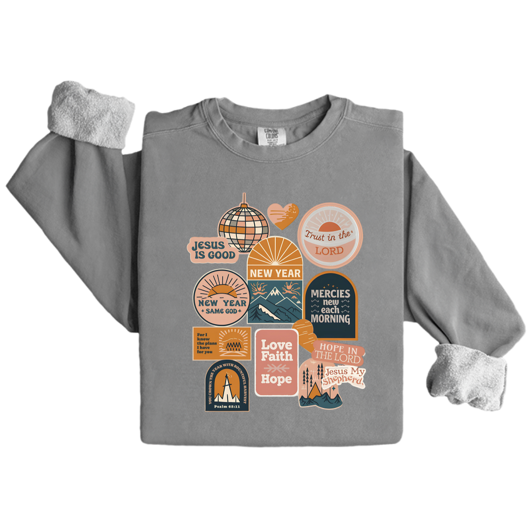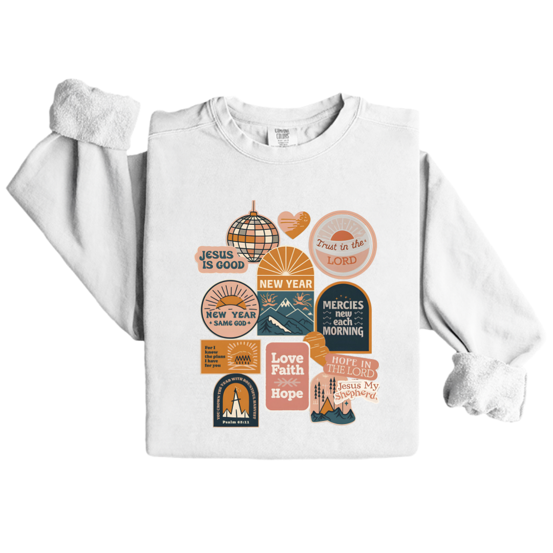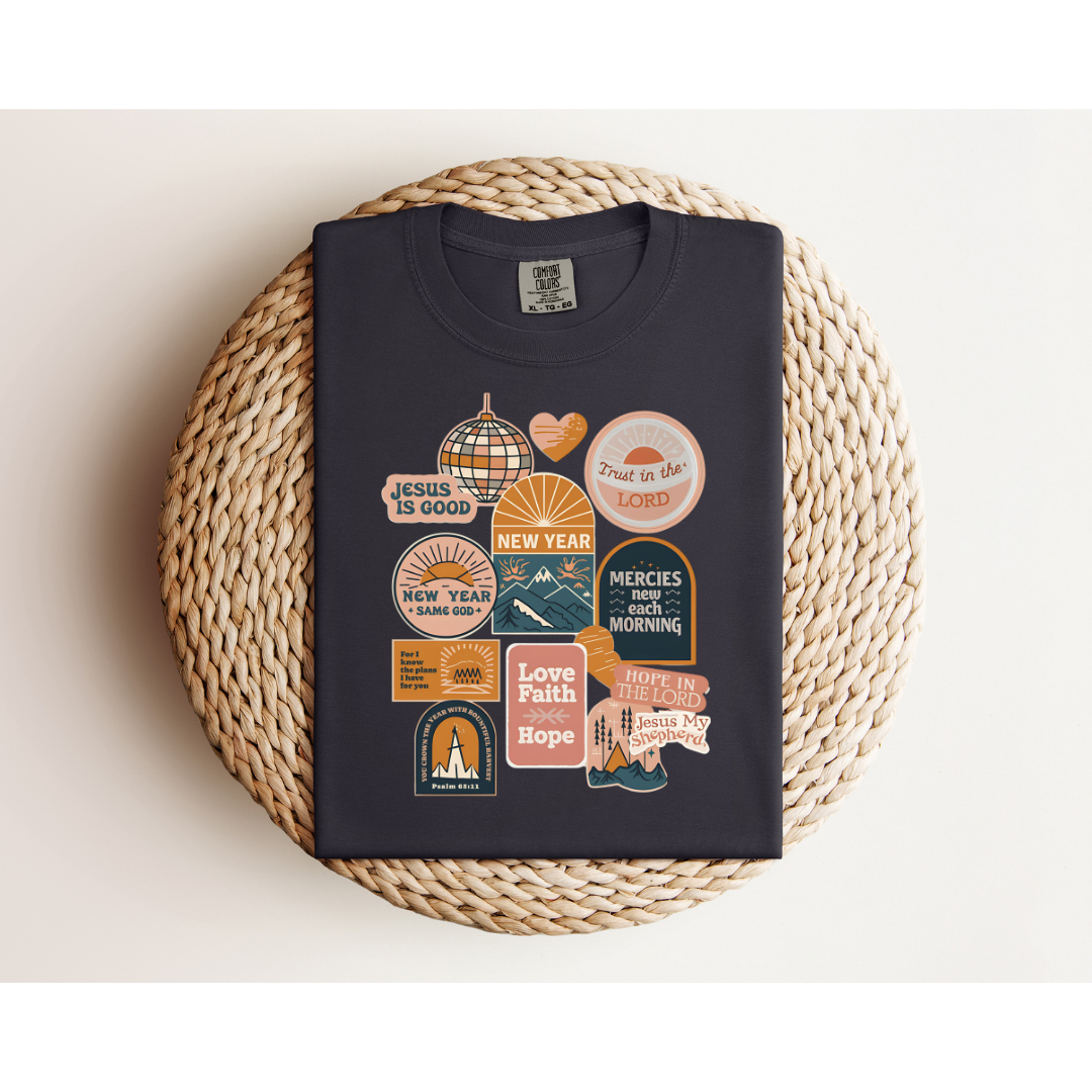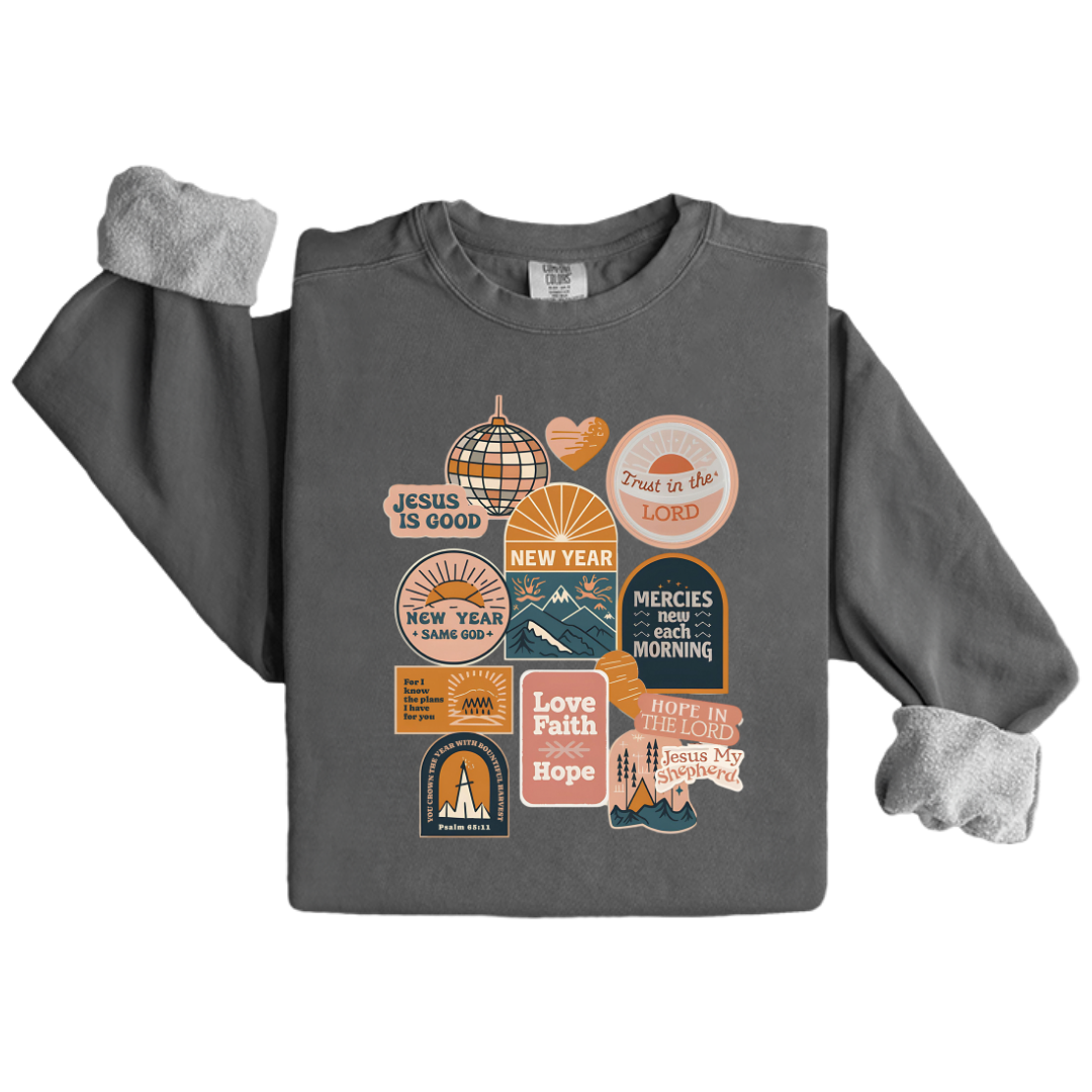 Hope in Jesus in the New Year Design. The Comfort Colors T-Shirts are 100% pre-shrunk cotton with a slightly thicker material but extreme softness and comfort. The Comfort Colors Sweatshirts are 80% cotton, 20% polyester.