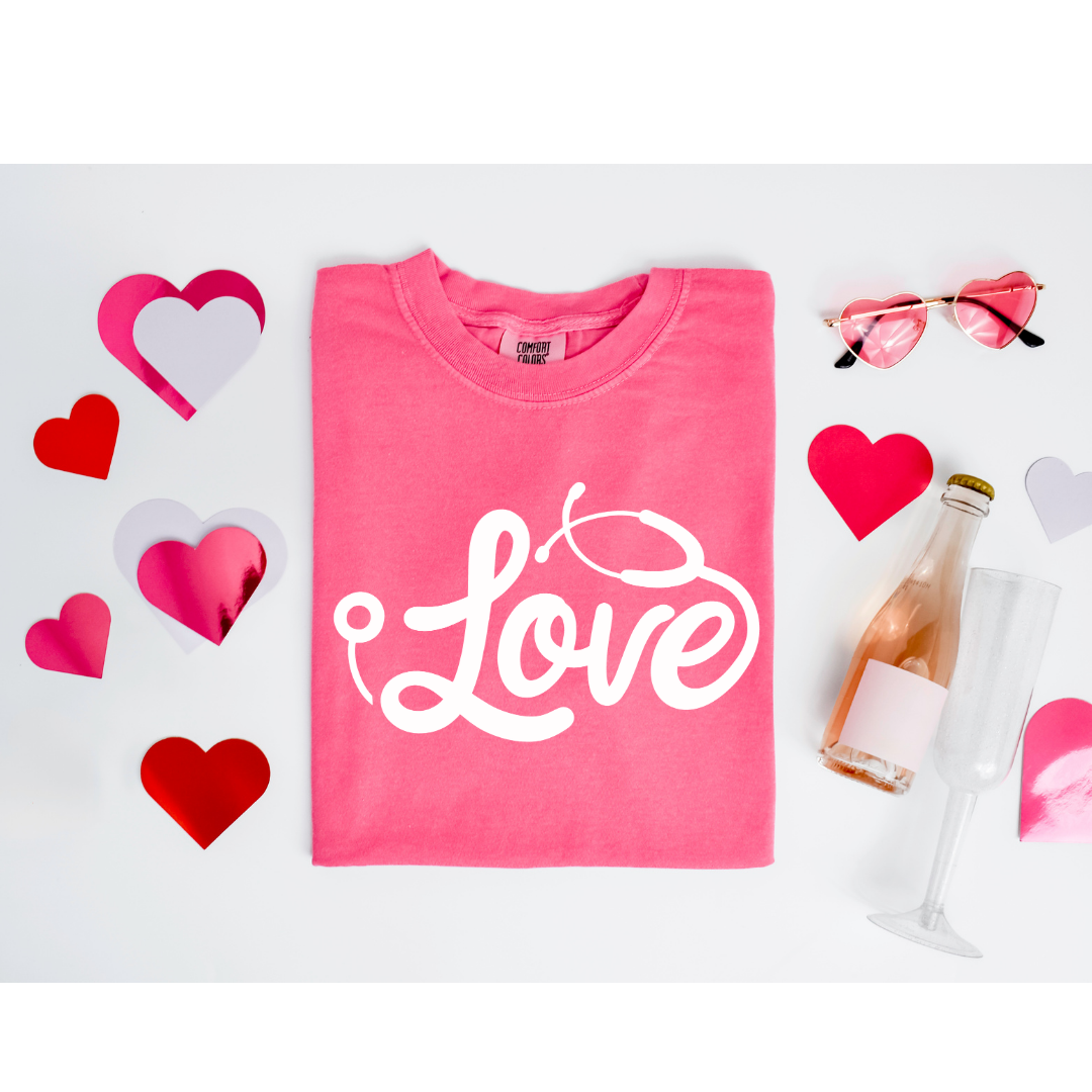 Love in Stethoscope - Gildan 18000, Comfort Colors 1717 & Comfort Colors 1566