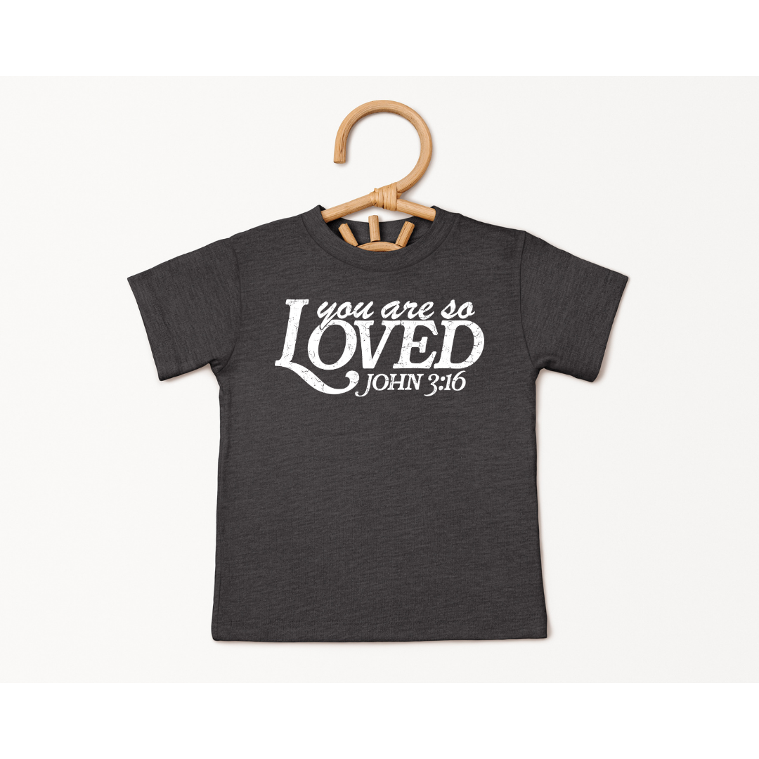 You Are So Loved Design. This is made in various brands including Gildan, Rabbit Skins, and Bella Canvas. The pictures display a short sleeve T-Shirt, but these are also sold in long sleeve and in crewneck sweatshirts.
